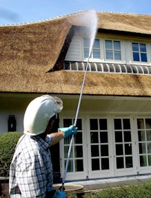 Mos en Algen bestrijding en brandvertraging rieten daken Gebr Dijkstra